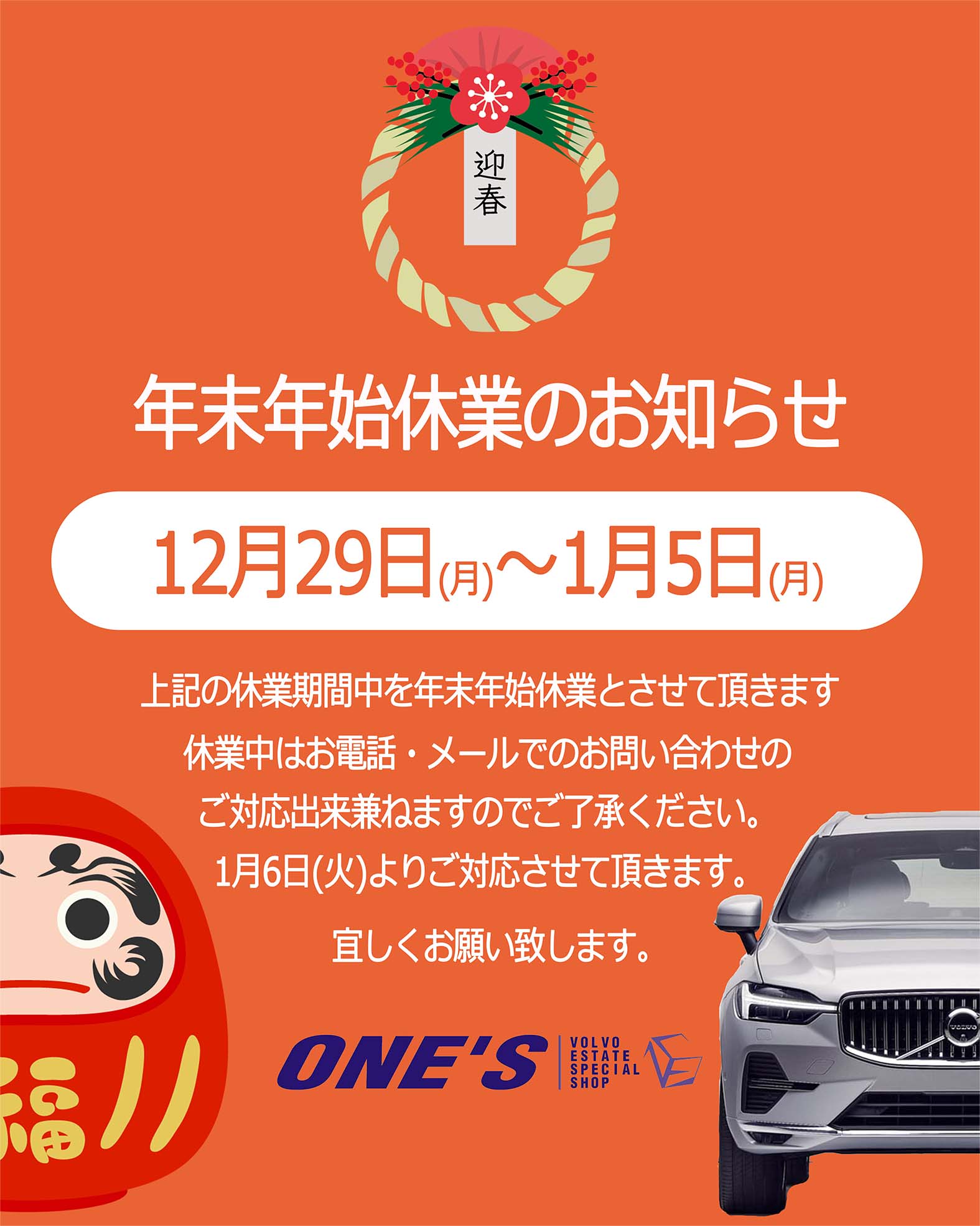 年末年始休業のお知らせ