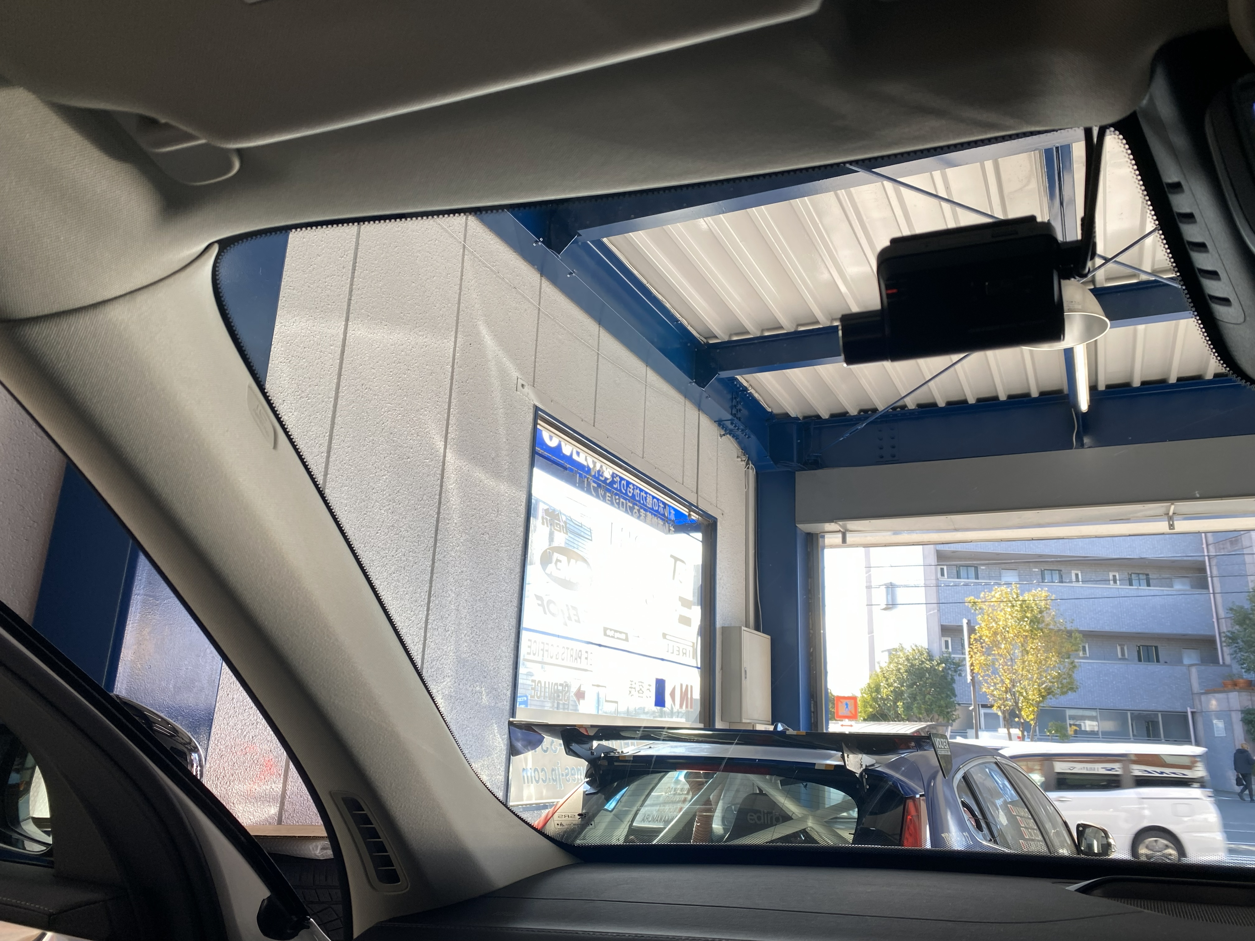 フロントガラスにアンテナを取付て行きます!