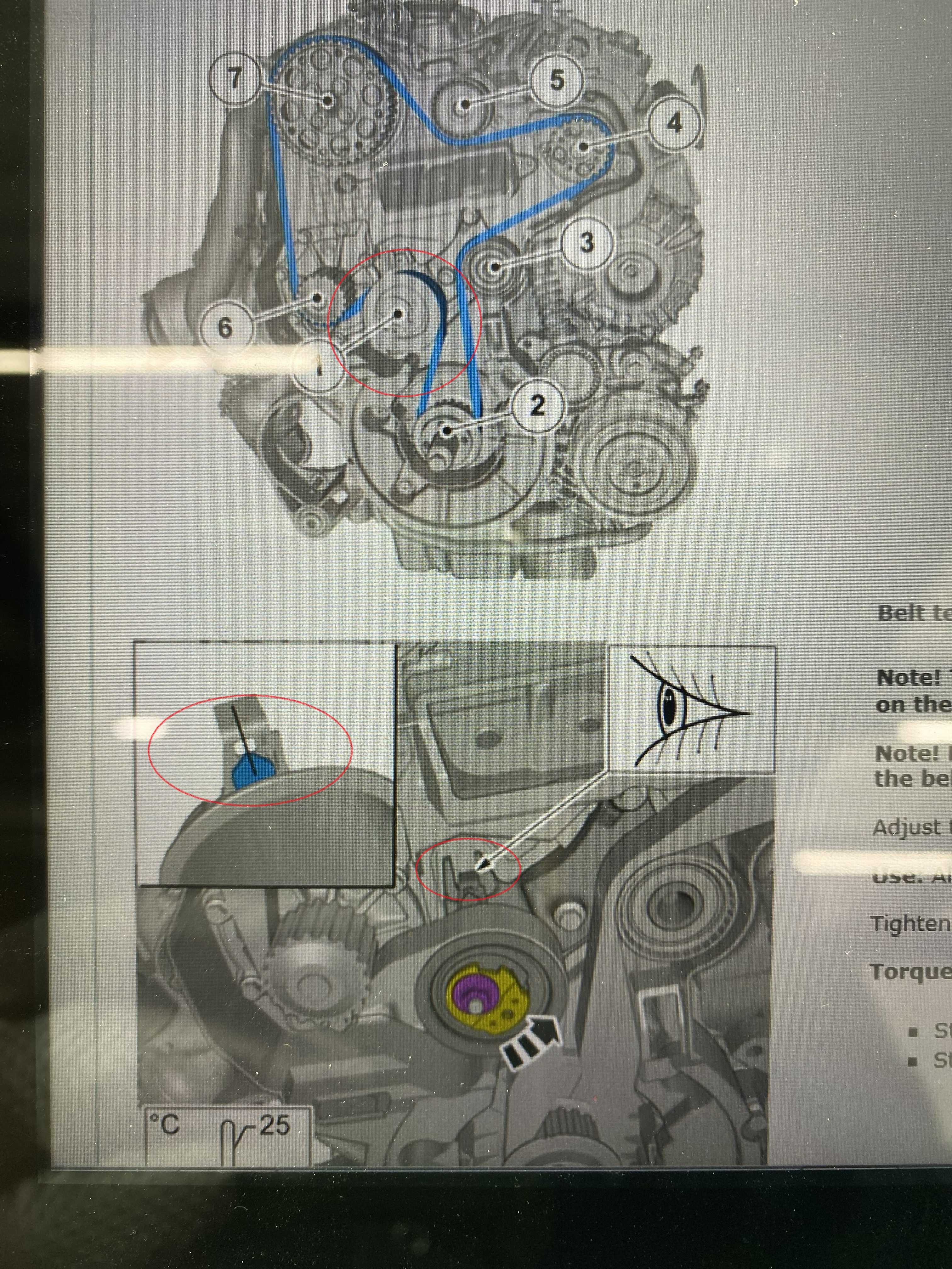 画像の下側イラストがそのテンショナープーリーの調整を