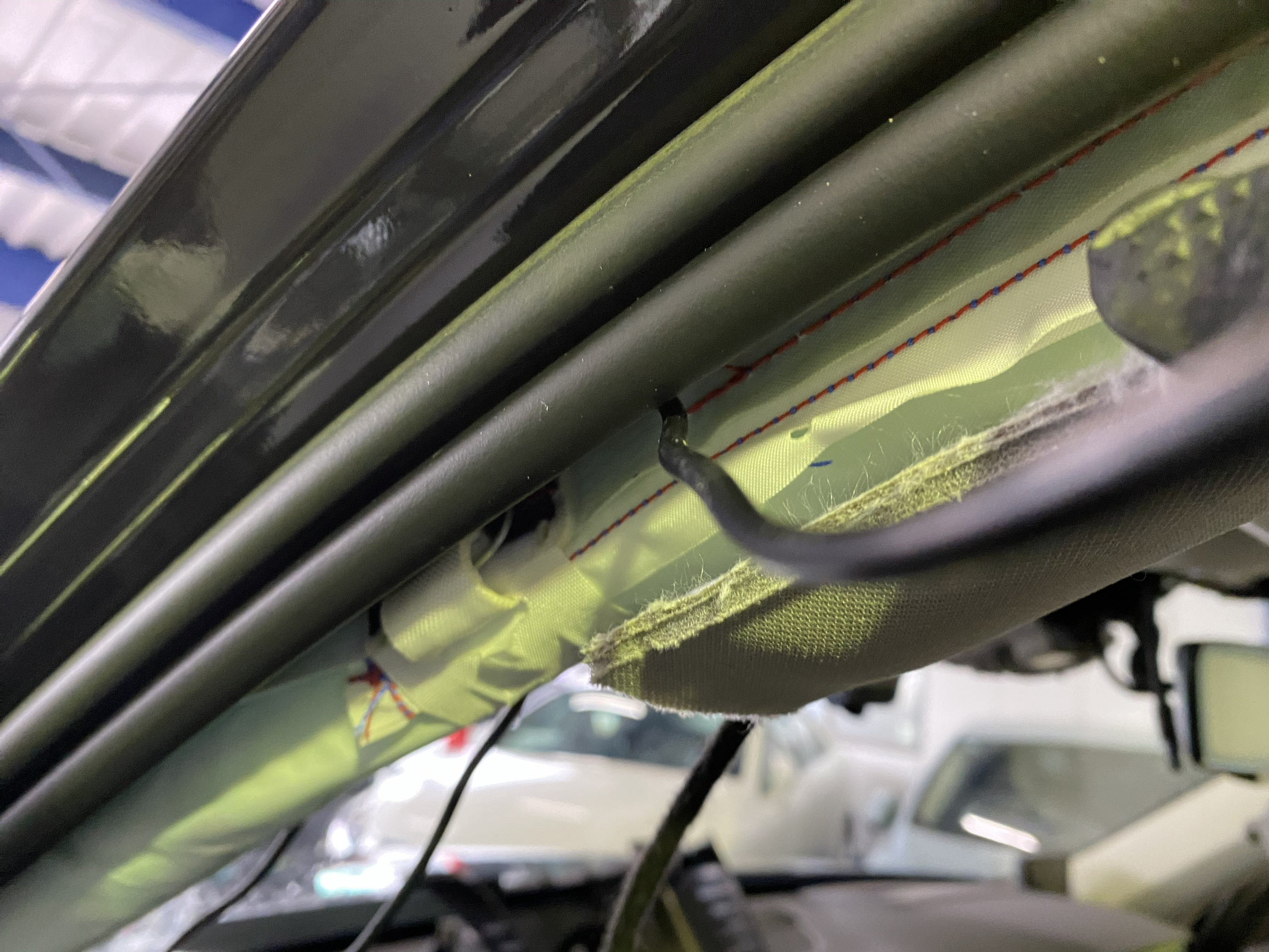 助手席側のカーテンエアバッグを巻くように通してある